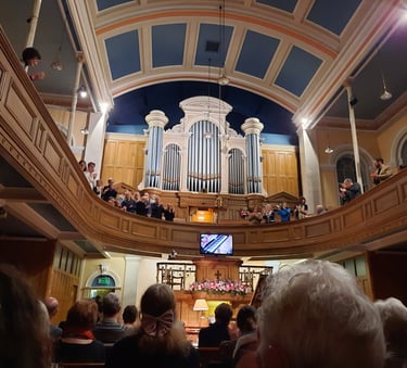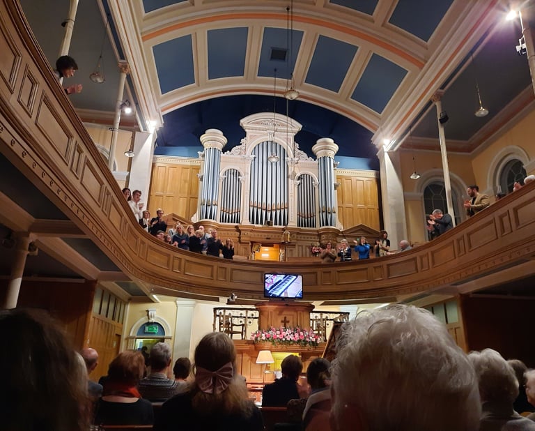 The Wesley Centre is a large Grade II listed neo-classical chapel, designed and built by Lockwood & Mawson in 1862 for a prosperous Victorian Methodist community. It is now a dominant landmark in Harrogate's town centre providing a warm and comfortable environment with a wonderfully clear acoustic.